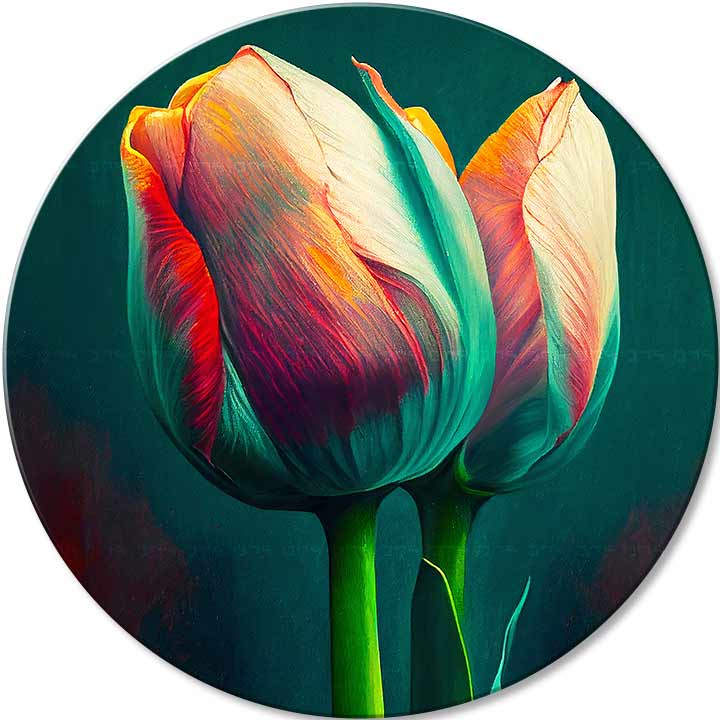 Ξεχωρίζοντας από τις παραδοσιακές ορθογώνιες μορφές, οι στρογγυλοί πίνακες προσθέτουν ένα στοιχείο ρευστότητας και οπτικού απείρου σε κάθε εσωτερικό χώρο. Το μοναδικό τους σχήμα διευρύνει τα όρια της παραδοσιακής αντίληψης της τέχνης, ανοίγοντας νέες δυνατότητες στη σύνθεση και το σχεδιασμό και προσδίδοντας δυναμισμό και φρεσκάδα στα σπίτια και τα γραφεία σας.