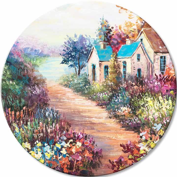 Introduction » Στρογγυλές εικόνες » Στρογγυλή ζωγραφισμένη εικόνα του σπιτιού της γιαγιάς | 60 cm