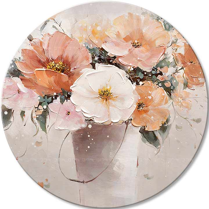Ξεχωρίζοντας από τις παραδοσιακές ορθογώνιες μορφές, οι στρογγυλοί πίνακες προσθέτουν ένα στοιχείο ρευστότητας και οπτικού απείρου σε κάθε εσωτερικό χώρο. Το μοναδικό τους σχήμα διευρύνει τα όρια της παραδοσιακής αντίληψης της τέχνης, ανοίγοντας νέες δυνατότητες στη σύνθεση και το σχεδιασμό και προσδίδοντας δυναμισμό και φρεσκάδα στα σπίτια και τα γραφεία σας.